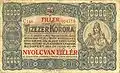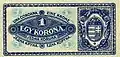 | 1 korona | 129 × 65 mm | Female model | Value in Hungarian and 5 foreign languages | 11 July 1921 | 30 June 1927 | ||