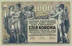 The paper money of the Hungarian korona was part of the circulating currency in the post-World War I Kingdom of Hungary until the introduction of the pengő in 1927. The variety of the banknotes and treasury notes and the variety of issuing authorities reflect the chaotic postwar situation in the country.