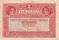 After the World War, the Hungarian Károlyi government requested the Austro-Hungarian Bank to deliver printing plates and banknote paper to Hungary, since it would have been too dangerous to deliver printed banknotes due to the political uncertainty. The banknotes (1, 2, 25 and 200 crowns) printed in Budapest under the Károlyi government and then under the Hungarian Soviet Republic were distinguished with a different serial number (1 K: higher than 7000; 2 K: higher than 7000; 25 K: higher than 3000; 200 K: higher than 2000). After the fall of the Soviet Republic, Vienna declared these banknotes to be counterfeits.