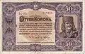 50 korona | 150 × 95 mm | Portrait of Ferenc II Rákóczi by Ádám Mányoki | Value in Hungarian and 5 foreign languages | 11 July 1921 | 30 June 1927 |