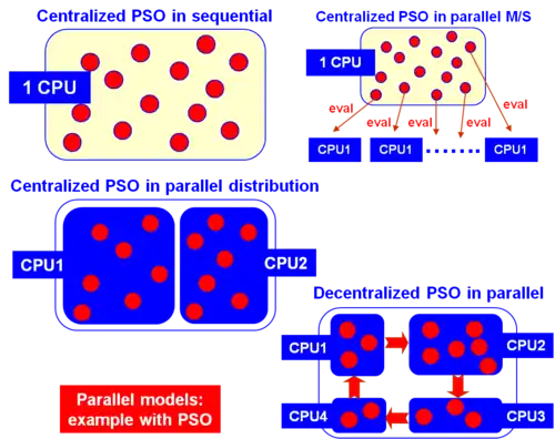 - Move acceleration model: The quality of each move is evaluated in a parallel centralized way. That model is particularly interesting when the evaluation function can be itself parallelized as it is CPU time-consuming and/or I/O intensive. In that case, the function can be viewed as an aggregation of a certain number of partial functions that can be run in parallel.
