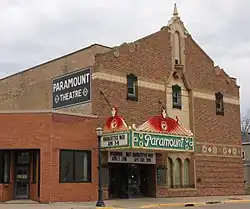 The theatre was designed by Ellerbe & Co. of Minneapolis, and built on the foundations of the Park Theatre which was destroyed by a tornado in 1928. The owner of the Park Theatre, and Paramount's first manager, was Karl Lindstaedt.[2][3]
