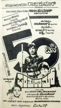 Parashuram is a 1989 Indian Kannada-language action film directed by V. Somashekar and produced by Parvathamma Rajkumar under Dakshayini Combines. The film stars Dr. Rajkumar, alongside Mahalakshmi, Vani Viswanath and Puneeth Rajkumar.[1] This was V. Somashekhar's last film with Rajkumar, who incidentally started his directing career with Bangaarada Panjara.[2] The musical score and soundtrack were composed by Hamsalekha, while cinematography and editing were handled by H. G. Raju and P. Bhaktavatsalam.[3]