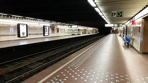 When the station was first built, there was a plan to eventually construct a connecting line along the route of the Rue Royale/Koningsstraat. To provide for this line, a much larger underground space was excavated than necessary for a simple station. The Rue Royale line was quickly cancelled, and the underground chambers intended for it now house the Brussels Metro's traffic control centre.