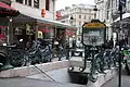 Ninety-one Guimard entrances survived until 1970.[20] Eighty-six are still extant and protected as historical monuments; six were protected in 1965, the remainder in 1978.[27] These include two original Type B édicules: at Porte Dauphine, on its original site and with the wall panels, and at Abbesses (moved from Hôtel de Ville in 1974). A third Type B of varying form at Châtelet is a 2000 recreation.[8] The remainder of the preserved entrances are simple enclosures or entourages, with or without the light and sign arch. In addition, two sides of an entourage form an entryway to the headquarters building of the RATP.