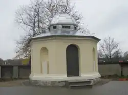 Situated on Dalkoska Street, the cemetery dates to 1894 with the Dziekanka hospital, divided into Catholic and Lutheran sections. It buried hospital patients until 1939 and Lutherans until 1945. During Nazi occupation, it stored murdered patients' bodies, with 90% of graves destroyed in 1940. Used for patients until the 1970s, it was municipalized, then transferred to the Metropolitan Curia in the 1990s.[32] The parish managed it from 2008, conducting five burials by 2010. Of about 100 graves, many from between 1910 and 1920 are damaged or anonymous. The Piotrowski family tomb, including Aleksander Piotrowski, the first Polish hospital director, was restored in November 2010.[2][10][33] On 15 July 2011, it returned to Curia management.[34]