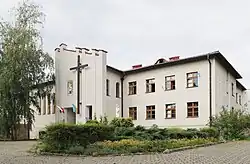 Built from 2001 to 2017 at 22d Eliza Orzeszkowa Street, it includes a residential section (rectory), the Well Youth Formation Center, a hall named after Blessed Bronisław Markiewicz, and garages.[2][10] From 2010 to 2017, the hall served as a temporary chapel. The Kozalik sports field operated there from 2010 to 2015.[9] Garage access and landscaping were completed in 2011.[15] After the Michaelites took over, the rectory became their property, while the parish retained the rest. A religious house was established on 1 November 2012, including a chapel dedicated to Saint Dominic. Exterior work finished in August 2014, with construction completed in 2017.[22]