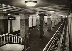 When the station opened in 1935, it was also the terminus of the Frunze Branch of the first stage (and from 1938, of Kirovsko–Frunzenskaya line). Although the plans called for the station to have a four-track reversal siding, that was not finished until 1937, and a temporary piston junction was instead installed before the platform to allow reversal of the trains. The station ceased to be the terminus in 1957, with the extension of the Frunzenskiy radius southwestward to Sportivnaya.