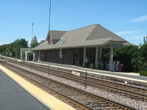 Park Ridge is one of two commuter railroad stations on Metra's Union Pacific Northwest Line in the city of Park Ridge, Illinois. It is officially located at 100 South Summit Avenue, and lies 13.1 miles (21.1 km) from the Ogilvie Transportation Center in Chicago.[2] In Metra's zone-based fare system, Park Ridge is in zone 2. As of 2018, Park Ridge is the 33rd busiest of Metra's 236 non-downtown stations, with an average of 1,168 weekday boardings.[1]