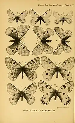 - ^ Avinoff, A. (1916) Some new forms of Parnassius (Lepidoptera Rhopalocera)., Avinoff, A. (1916) Some new forms of Parnassius (Lepidoptera Rhopalocera). The Transactions of the Entomological Society of London 1915 (3/4): 351-360; pls. 52-54.