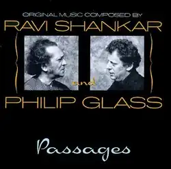 Passages is a collaborative chamber music studio album co-composed by Ravi Shankar and Philip Glass, released in 1990 through Private Music.[1] Consisting of arrangements by each of the composers around themes written by the other, the album's content is a hybrid of Hindustani classical music and Glass' distinct American minimal contemporary classical style.[2] The album reached a peak position of number three on Billboard's Top World Music Albums chart.