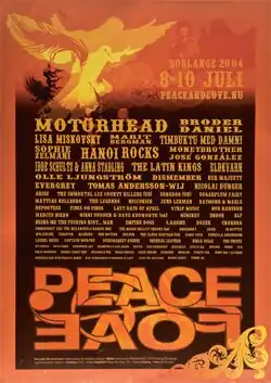 Peace & Love was the largest music festival in Sweden, known for its humanitarian message, pervasive throughout the event. It started in Borlänge and ran from 1999 until the company filed for bankruptcy in 2013.[1]