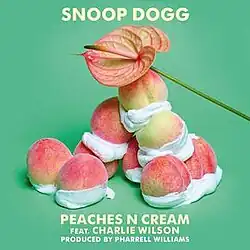 "Peaches N Cream" is a song by American hip hop recording artist Snoop Dogg, featuring vocals from American singer Charlie Wilson.[1] was released on March 10, 2015, as the first single of his thirteenth studio album Bush, with the record labels I Am Other and Columbia Records. The song was produced by Pharrell Williams,[2] who also participated in the band composition, along with the interpreters and Nelly, Garry Shider, George Clinton, James Brown, Robert Ginyard, Jr., Mary Brockert, and Walter Morrison.