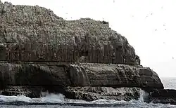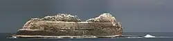 Pedra Branca is a rock islet in the Southern Ocean, off the southern coast of Tasmania, Australia.[1][2] The island is situated approximately 26 km (16 mi) south southeast of South East Cape and is contained within the Southwest National Park, part of the Tasmanian Wilderness World Heritage Site. An erosional remnant of the Tasmanian mainland, the island is approximately 270 m (890 ft) long, 100 m (330 ft) wide, with an elevation of 60 m (200 ft) above sea level. The island is estimated to have separated from the Tasmanian mainland at least 15,000 years ago.[3]