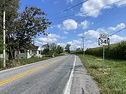 When Pennsylvania first legislated routes in 1911, what is now PA 341 was not given a legislative number.[5] PA 341 was designated by 1930 to run from US 230 (now PA 230) east of Middletown east to PA 241 near Colebrook along its current alignment. At this time, the route was paved for a short distance east of US 230 and in the Deodate area while remainder was unpaved.[6] The entire length of the route was paved in the 1930s. Also, the route was realigned to head southeast along Lawn Road to end at PA 241 in Lawn.[7] PA 341 was realigned back to its current eastern terminus in the 1940s.[8]