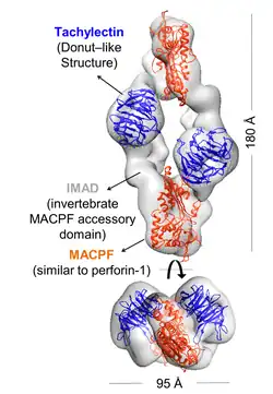 3. ^ a b c d e f g Giglio ML, Ituarte S, Milesi V, Dreon MS, Brola TR, Caramelo J, et al. (August 2020). "Exaptation of two ancient immune proteins into a new dimeric pore-forming toxin in snails". Journal of Structural Biology. 211 (2): 107531. doi:10.1016/j.jsb.2020.107531. hdl:11336/143650. PMID 32446810. S2CID 218873723.