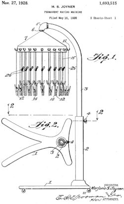 Permanent wave machine invented in 1928 by Marjorie Joyner — The first African American woman to receive a patent
