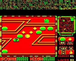 Perplexity is an isometric pseudo 3D maze game which graphically resembles the 1987 arcade game Pac-Mania (both the maze view and main characters) but while it does share some gameplay elements, the game is a much more calm and organised playing experience with the emphasis on puzzle-solving and as such has been described as a 3D version of Repton.[2]