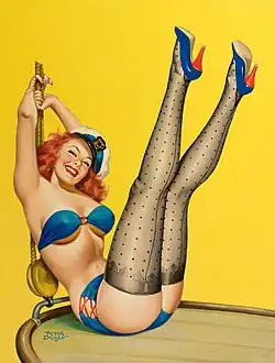 Peter Driben (October 22, 1903 - September, 1968), an American pin-up artist, was perhaps one of the most productive pin-up artists of the 1940s and 1950s.[1] Although both Alberto Vargas and Gil Elvgren have extensive catalogues of work, neither came close to the output of Driben. Driben's pinups delighted the American public from the beginning of World War II until the great baby boom of the 1950s.