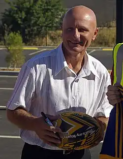 Peter Maxwell John Sterling OAM (born 16 June 1960), nicknamed Sterlo, is an Australian former rugby league commentator, television personality and player. He was one of the all-time great halfbacks and a major contributor to Parramatta Eels' dominance of the New South Wales Rugby League premiership in the 1980s. Sterling played eighteen Tests for the Australian national team between 1982 and 1988. He also played in thirteen State of Origins for New South Wales, winning man of the match on four occasions (one of them being the 1987 exhibition match played in the USA). Sterling played in four premiership-winning sides with Parramatta in 1981–1983 and 1986 and has been inducted into the Australian Rugby League Hall of Fame. His time spent playing for English club Hull F.C. also earned him membership in their hall of fame.