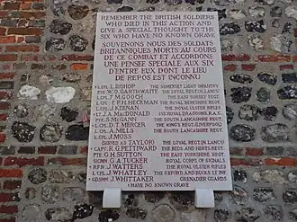 Roger Gamelyn Pettiward (1906–1942), eldest son and heir, a well-respected cartoonist in Punch Magazine who used the pseudonym "Paul Crum",[21] educated at Eton College, Christ Church, Oxford, where he studied agriculture, and as an art student at the Vienna State Academy, the Munich Academy of Fine Arts and Slade School of Art. In 1932 he was part of an unsuccessful expedition with Peter Fleming, described in Fleming's book Brazilian Adventure, to search for the British explorer Percy Harrison Fawcett, who had disappeared in the Brazilian jungle in 1925, and was never found. In 1933 following his father's death he inherited the Pettiward estates and sold Finborough Hall in 1935.[12] In 1935 he married Diana Berners-Wilson, daughter of Frederick Berners-Wilson of the Hardwick, Abergavenny, Wales,[12] and in 1938/9 built a modern home at The Studio House,[22] Duke's Head Yard, Highgate High Street, North London. He served in World War II with the Bedfordshire and Hertfordshire Regiment and was killed in action on 19 August 1942 in the Dieppe raid whilst leading a troop from No. 4 Commando against German coastal guns.[23]