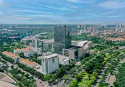 - The International Commercial and Financial District – C District: Simply known as The Financial District (FiDi), it is most important district of the zone, often known as the CBD of South Saigon, along with the Thủ Thiêm New Urban Area and the historical city centre included District 1 and 3, is one of the most important CBD of Ho Chi Minh City with many office buildings are built here e.g. UOA Tower, Vinamilk Tower, Manulife Plaza, Saigon Paragon, Lawrence S. Ting Building, and the Victory Tower of Petroland (the current highest tower in District 7 and South Saigon area), etc. Multinational groups also banks, exchange and financial companies open their offices here, some notable tenants here are Vinamilk, the Vietnam subsidiaries of UOA Group, Unilever, Manulife, KPMG, etc. The Saigon Exhibition and Convention Center (SECC) is also located here, which has hosted many major exhibitions, conferences, and concerts. The district is also home to the District 7 Administration Center and the. Moreover, there's still have residences, condotels and hotels constructions including Saigon South Hotel of French hotel brand Ibis, Capri Hotel Residences and Star Hill Residences, Dinh Thien Ly 1 School also here.
