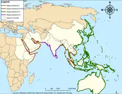 They have been observed to exhibit migratory behaviour off the south-west coast of India.[10] They are more commonly found furthest north during August, and further south in May.[10] They show an even distribution in October and February. Additionally, there are more juveniles present in May, and more adults present in August.[10]