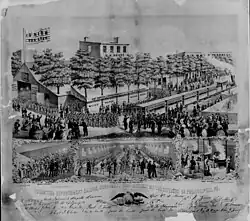 In the 1860 mayoral election, the Democratic Party candidate John Robbins challenged the People's Party candidate and incumbent mayor, Alexander Henry.[2] The People's Party in Pennsylvania was aligned with the national Republican Party but downplayed the issue of slavery and made tariff protection its main issue in the state. During the election, the Democrat attacked Henry's moderate position on slavery as virtual Abolitionism. He was reelected, but vote tampering was alleged. In the election for governor, Philadelphia gave the Democrats 51 percent of the vote, and in the presidential election, the Republicans' Abraham Lincoln won 52 percent of the city's vote.[3]