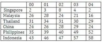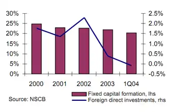 In an AT Kearney Survey of Investment Intentions of 1000 leading MNCs, Philippines did not figure in the top 20 locations while Singapore, Malaysia, China and Thailand did. In the years 2000-2004, %of investment compared to GDP has been declining.[1]