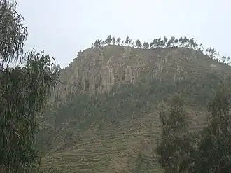 These silica-poor rocks belong to the Adwa-Aksum trachy-phonolite volcanic field.[4] They are also exposed in Addi Amyuq, some 3 kilometres north of Hagere Selam, on the northern slope of the ridge. The morphology of the Addi Amyuq phonolite outcrop is similar to that of Gobo Dura where the Aksum obelisks were quarried.[1]