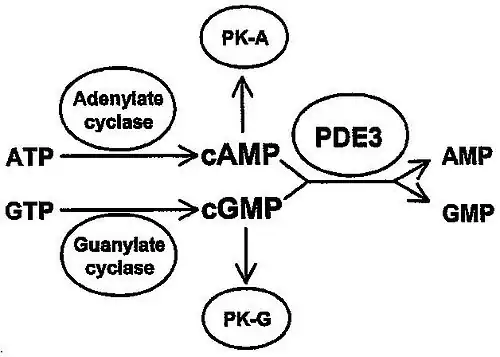 PDE3 is a phosphodiesterase. The PDEs belong to at least eleven related gene families, which are different in their primary structure, substrate affinity, responses to effectors, and regulation mechanism. Most of the PDE families are composed of more than one gene. PDE3 is clinically significant because of its role in regulating heart muscle, vascular smooth muscle and platelet aggregation. PDE3 inhibitors have been developed as pharmaceuticals, but their use is limited by arrhythmic effects and they can increase mortality in some applications.