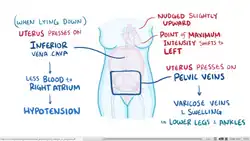 Uterine enlargement beyond 20 weeks' size can compress the inferior vena cava, which can markedly decrease the return of blood into the heart or preload. As a result, healthy pregnancy patients in a supine position or prolonged standing can experience symptoms of hypotension.[25]