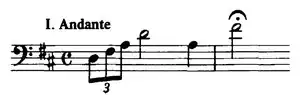 - Andante – Allegro assai: The piano concerto opens with a Wagnerian horn solo that fades to light strings, a soft piano melody, and more strings before breaking into the main theme of the piece. The horn is prevalent throughout, as are the strings, before concluding in D major.