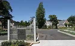 At the north end of Piedmont Avenue and Pleasant Valley Avenue is the hillside Mountain View Cemetery, which was designed by Frederick Law Olmsted and opened in 1863.[6] It is known for Millionaire's Row, a section high on the hill lined with the ornate mausoleums of wealthy families, including those of Domingo Ghirardelli, Henry J. Kaiser, and Charles Crocker. Other notable people buried in the cemetery include civil rights activists Fred Korematsu and Bobby Hutton, poet Ina Coolbrith, and architect Julia Morgan, who also designed the nearby Chapel of the Chimes. The cemetery was featured prominently in the 2018 movie Blindspotting.[7]