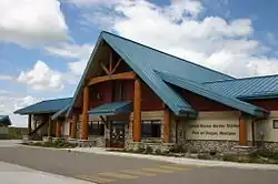 The highway connects Calgary with Waterton-Glacier International Peace Park. This crossing is the third-busiest in Montana. Twenty homes for US border officials are near the station.[9] In 1933, the US built a log cabin-style border station, which is on the National Register of Historic Places.[10] The US built a new facility in 2003, but the historic border station still stands a short distance to the south.