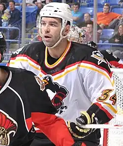 Pierre-Luc Létourneau-Leblond (born June 4, 1985) is a Canadian former professional ice hockey left winger who played in the National Hockey League (NHL) for the New Jersey Devils, Calgary Flames and Pittsburgh Penguins. In July of 2023, he was inducted into the New York Hockey Hall of Fame. [1] He played a physical game and is known as an agitator and a fighter. He was an extremely tough player, who very rarely fell when fighting. He is known as having some of the longest fights.[2]