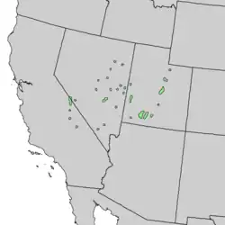 The species occurs in Utah, Nevada and eastern California. In California, it is restricted to the White Mountains, the Inyo Mountains, and the Panamint Range, in Mono and Inyo counties. In Nevada, it is found in most of the higher ranges of the Basin and Range from the Spring Mountains near Las Vegas north to the Ruby Mountains, and in Utah, northeast to South Tent in the Wasatch Range. Due to the inaccessibility of many of the sites that this species occupies, information on their location and abundance is incomplete, and thus is needed. Environmental niche modelling has been used to better map the distribution of Great Basin bristlecone pine using topographic and spectral variables calculated from a geographic information system (GIS).[11]
