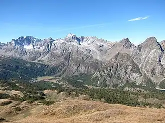 ![]() Valle Devero seen from Monte Corbernas, Pizzo Cornera is the second peak from left. | |
