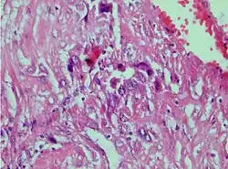 - ^ a b Bouquet de la Jolinière J, Khomsi F, Fadhlaoui A, Ben Ali N, Dubuisson JB, Feki A (2014). "Placental site trophoblastic tumor: a case report and review of the literature". Frontiers in Surgery. 1: 31. doi:10.3389/fsurg.2014.00031. PMC 4286988. PMID 25593955.
