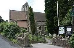 All Saints remains as one of two C of E churches in Malvern Wells following the closure of St Peter's Gothic style church designed by Robert Jearrad (1836).[6] Built in 1930 in 13th-century style in Malvern rag-stone by architect Troyte Griffith of Nevinson & Newton,[6] to whom Sir Edward Elgar dedicated an Enigma Variation,[7] it is located on steep sloping common land donated by Lady Emily Foley, it has a semicircular apsidal chancel which demonstrates the architectural challenges of east-facing chancels on the flanks of the Malvern Hills, and an organ by Nicholsons.