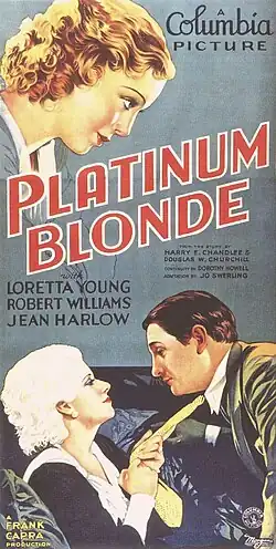 Platinum Blonde is a 1931 American pre-Code romantic comedy film directed by Frank Capra, written by Jo Swerling, and starring Loretta Young, Robert Williams, and Jean Harlow. It was Williams's last screen appearance; he died of peritonitis three days after the film's October 31 release.[1][2]