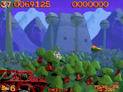 At the beginning of the game, the player is given a set number of credits that can be used to continue play if all lives are lost. One bonus credit is awarded for completing each of the first three levels; after the fourth is completed, the player receives a large bonus depending on the number of unused credits.