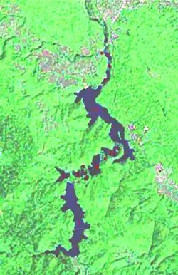 The national park's lakes are arranged in cascades. Sixteen lakes can be seen from the surface.[3] The lakes are renowned for their distinctive colors, ranging from azure to green, grey or blue. The colors change constantly depending on the quantity of minerals or organisms in the water and the angle of sunlight.[4]