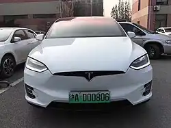 In April 2016, the Traffic Management Bureau under the Ministry of Public Security announced the introduction of new green license plates to identify new energy vehicles, as opposed to the country's standard blue plates. The NEV plates include a Chinese character short for the provincial region where they are issued, and seven numbers and letters, compared to six on standard plates. The objective of the special plates is to facilitate police enforcement of the preferential policies that some local authorities apply to cleaner cars to help cut emissions and ease traffic.[44] For example, central Beijing has in place a road space rationing scheme, a driving restriction regulation that bans conventional vehicles from entering the city for one day a week, but new energy vehicles are exempted from the restriction.[45] Beijing also introduced a vehicle quota system in 2011, awarding new car licenses through a lottery, with a ceiling of 6 million units for 2017. New energy vehicles were placed in a special category where the odds of winning a license plate are much higher than conventional autos.[46]