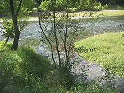 The confluence of Plunketts Creek (foreground) with the much larger Loyalsock Creek in the village of Barbours.