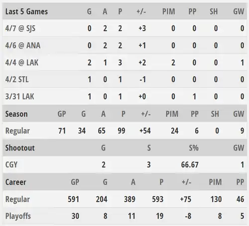 - ^ "NHL Stats". NHL.com. Retrieved April 27, 2024.