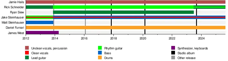 On March 23, 2024, the band announced that drummer Daniel Furnari was withdrawing from the European leg of the Fatalism tour due to ill health[21] and replaced by Conjurer drummer Noah See. Furnari would return to the lineup for the band's tour of regional Australia with Ocean Grove, as well as Sydney bands Bloom and Inertia.