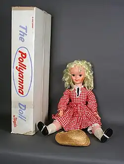 The film generated a trickle of juvenile merchandise, including a Dell comic book,[11] a paper-doll collection, an LP recording, an illustrated Little Golden Book, and a 30" Uneeda character doll in a red and white gingham dress, pantaloons, and boots. Disney was selling photo lockets as part of a merchandise promotion, with the quote claiming to be from Abraham Lincoln on them: "If you look for the bad in mankind expecting to find it, you surely will". Director and screenwriter David Swift discovered the necklace in a gift shop while on vacation with his family and called the studio to have the item recalled immediately, as it was not a quote from Lincoln, but actually a paraphrasing of a line from Eleanor Porter's original 1913 novel written for the film.[12]