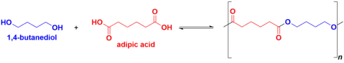 The polyester of adipic acid is synthesized using 1,4-butanediol. The chain lengths are kept low by using an excess of diol in the reaction.