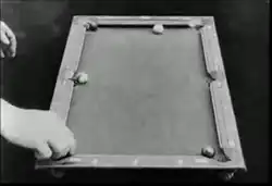 Fields was an expert juggler. As with his early films, Pool Sharks was intended to highlight a pool ball juggling act that featured in the actor's vaudeville show. In the final film, however, there is only a brief shot of Fields juggling several billiard balls, as his act was largely replaced with several poorly edited stop motion sequences depicting impossible shots, such as the balls jumping off the table and re-racking themselves on the wall. Though innovative for the time, they are poorly animated, with obvious edits, and the animator's hand can actually be seen moving the balls along in one of the frames.